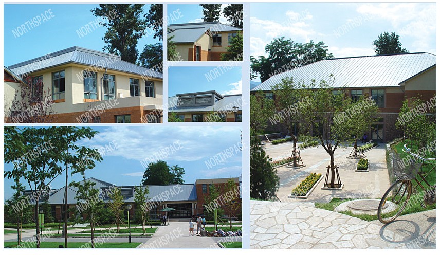 北京嘉泽生态住宅小区屋面工程,面积2070平米,为铝合金板建造。采用国际领先的立边咬合系统,360度锁缝,结构性防水