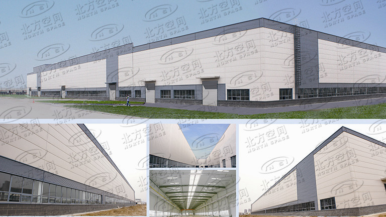 华元重型工程机械有限公司联合厂房钢结构工程,位于河北省廊坊经济技术开发区,建筑面积30,626平方米;结构类型:门式刚架结构;屋面采用NS-R360直立锁缝屋面系统,此系统为所有屋面系统中最防风雨,免维修、又耐久使用、彻底消除漏雨隐患的屋面系统。屋面内板采用NS-WII彩板。墙面外观设计独特,采用北方空间特有的NS-PW纯平板和小波纹板NS-SW横板搭配,其外观设计美观大方,具有现代化气息。