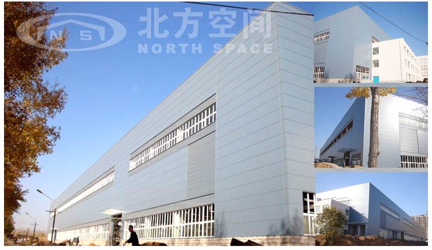 中国煤矿机械装备有限责任公司平朔矿区维修中心(简称平朔矿区维修中心)是中国煤矿机械装备有限责任公司直属企业之一。平朔矿区维修中心成立于2005年11月7日,位于山西省朔州市经济开发区,是国内大、中型煤矿企业成套设备的专业维修服务提供商。北方空间钢结构有限公司在2009年承接了其维修中心技改项目主厂房钢结构及彩色钢板围护系统。建筑面积20660平方米;建筑物长度171米;宽度120米;吊车梁顶标高12米;建筑物檐口标高16.3米。 主立面采用我公司研制开发的具有国际领先水平的纯平横板NS-PW和NS-SW板型,围护系统采用先进的NS-R360板型,屋面板下层板采用NS-WII板型,雨棚为钢结构支撑钢化玻璃盖顶雨棚。建筑整体精致,优雅简洁。