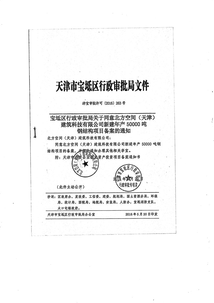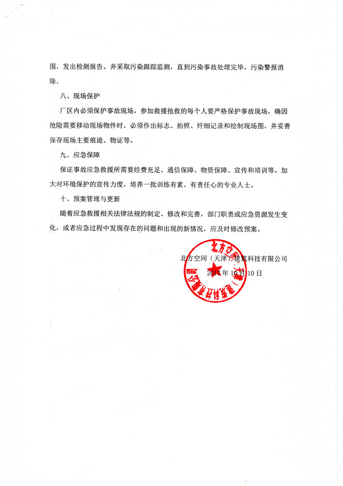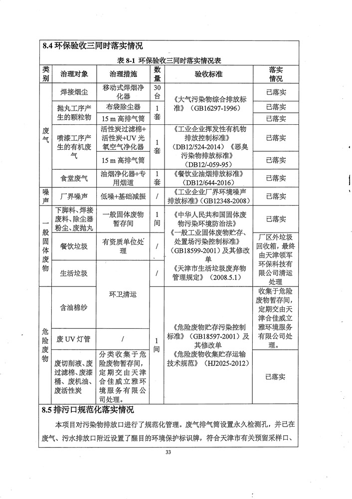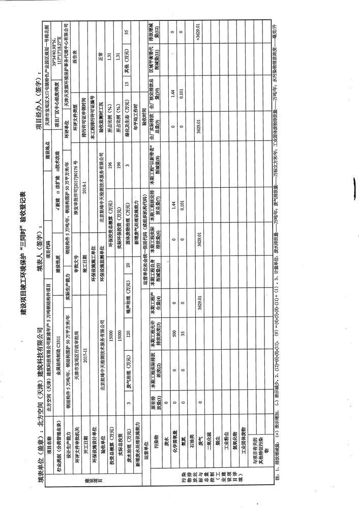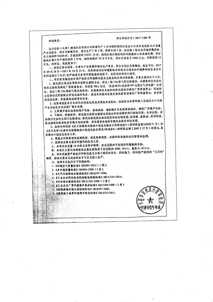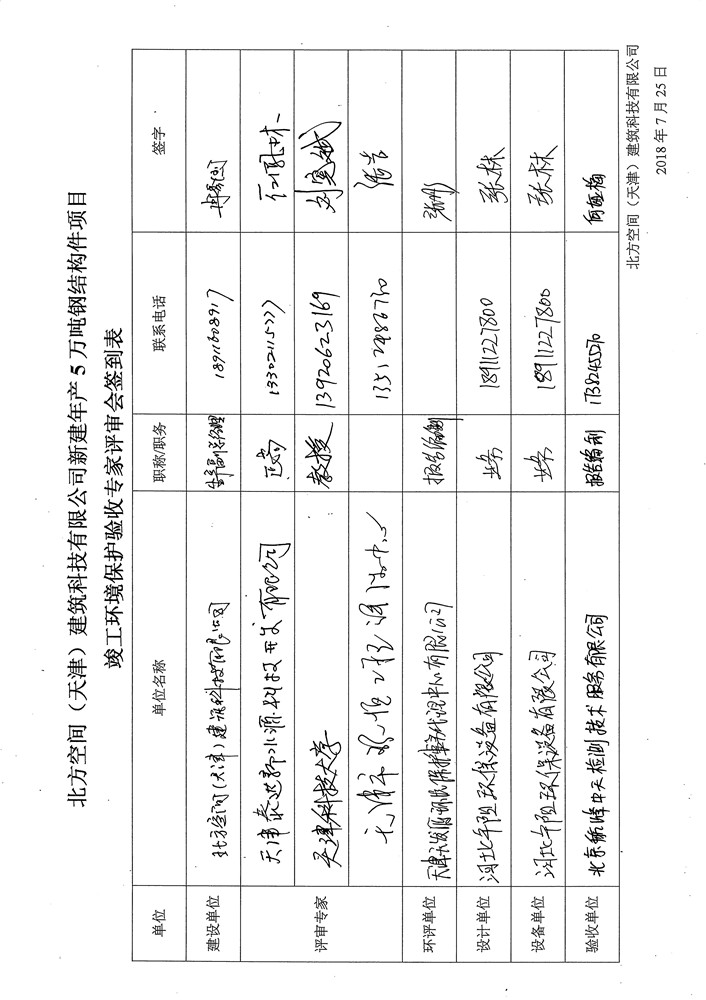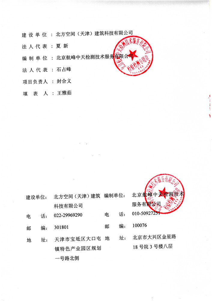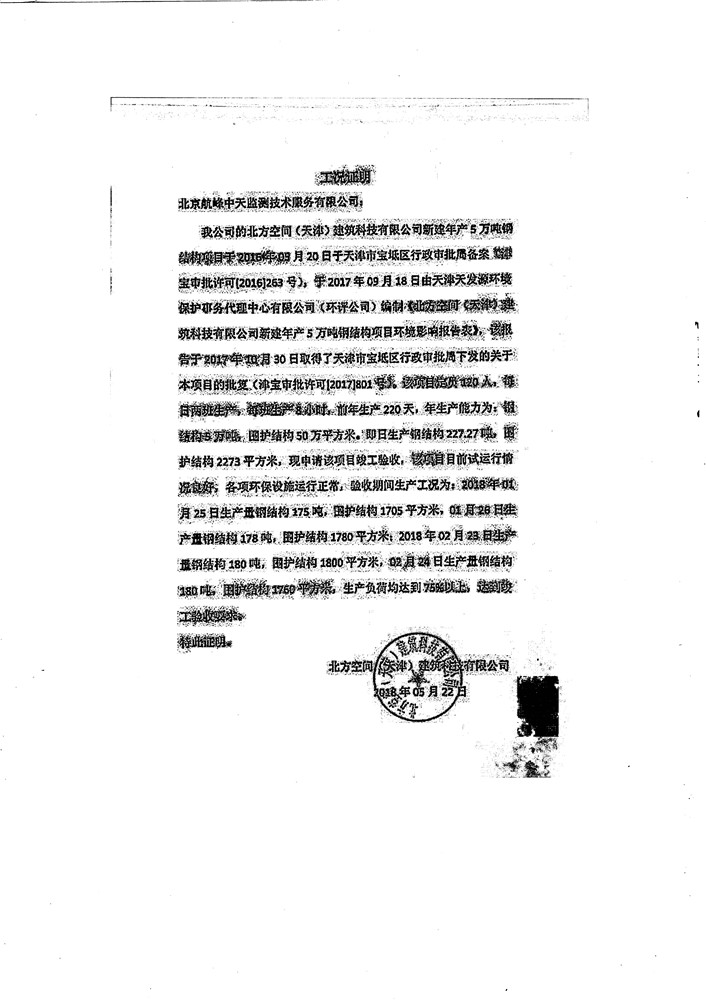 北方空间(天津)建筑科技有限公司新建年产5万吨钢结构件项目竣工环境保护验收监测报告表及环境风险应急预案和事故防范